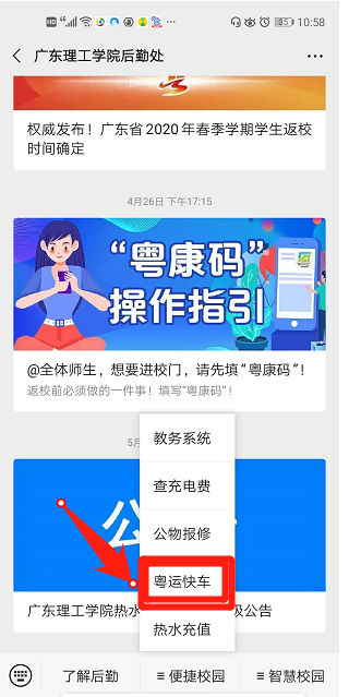 员工外出校园需报集团同意,注意个人卫生防护,乘坐正规车辆,如校内的粤运快车(礼堂前),粤运为国企公司,车辆严格按照防疫要求进行消洗,可放心乘坐,粤运快车的车票可通过下方“太阳成集团tyc122cc后勤处”公众号里“便捷校园”的“粤运快车”进行购票。