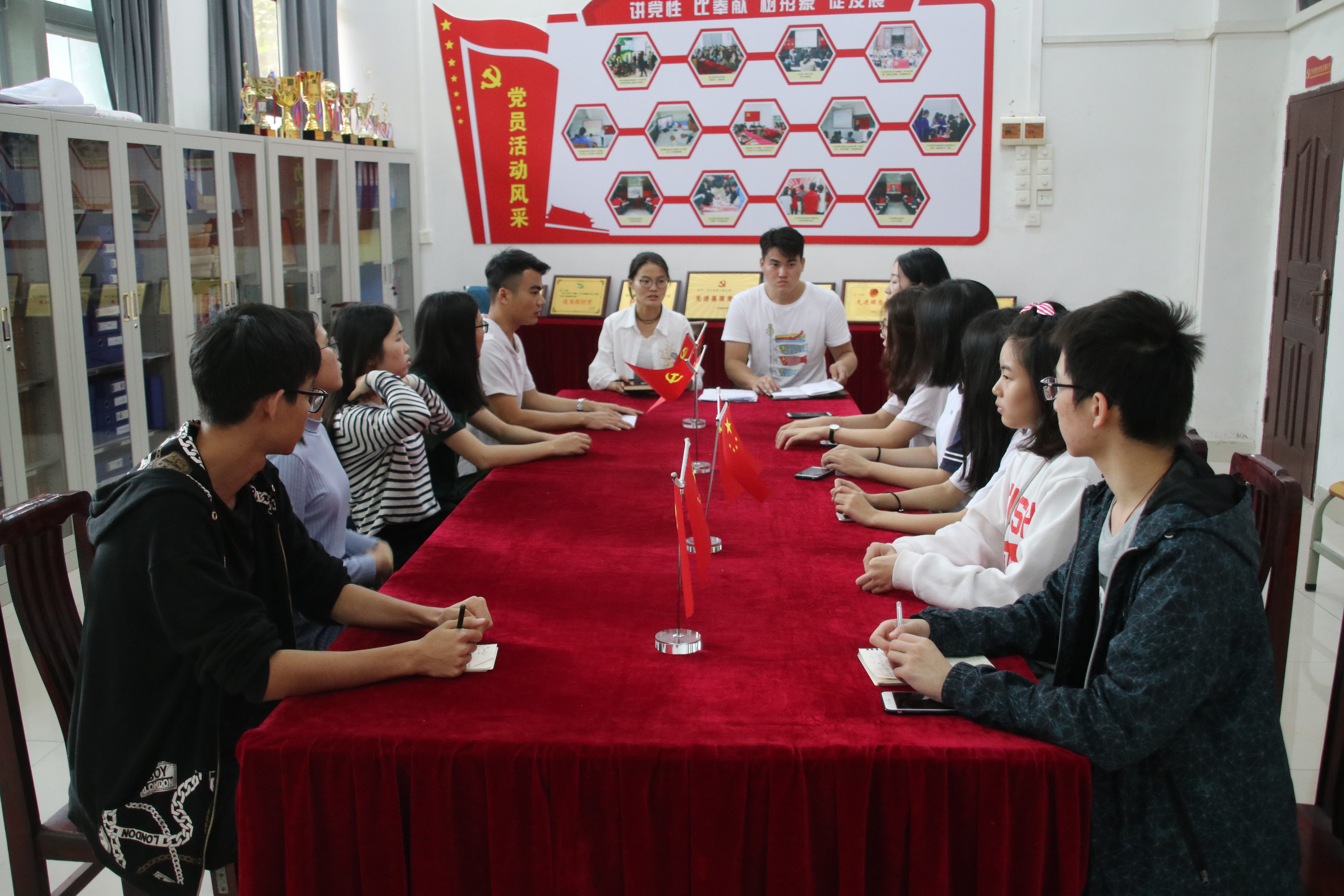 本网讯(艺术系 韩嘉华)为了加强党的先进性建设。发展党员工作是加强党先进性建设的基础性、源头性工程。艺术系员工党支部于2018年11月9日下午在艺术楼党员活动室召开建党对象转预备党员讨论会,告知员工党员发展的一些参评条件,会议上建党对象积极踊跃的阐述了自己的入党动机以及近期的思想状况,每个员工都表现的非常出色。