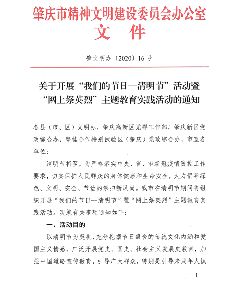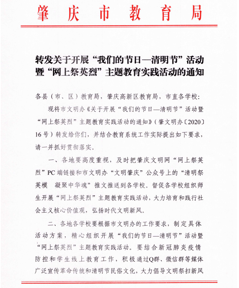 关于开展“我们的节日-清明节”活动暨“网上祭英烈”主题教育实践活动的通知