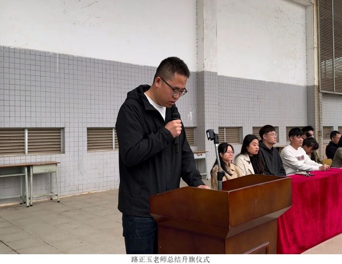 最后,路正玉老师进行升旗仪式总结:同学们,每一次仰望国旗冉冉升起,都是在提醒我们,今天的和平与幸福来之不易。作为新时代青少年,我们要将爱国之情转化为实际行动,在生活中践行文明,在集体中勇担责任。希望同学们以今天升旗仪式为契机,以更饱满的热情投入学习与成长,用每一天的踏实努力为国旗增光添彩。