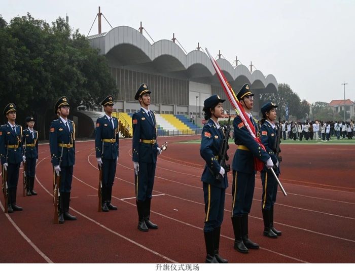 “齐步——走!”随着一声令下,国旗护卫队迈着整齐划一的步伐走向升旗台,铿锵的脚步声响彻校园,这一刻,所有人屏息凝神,目光追随国旗的方向。