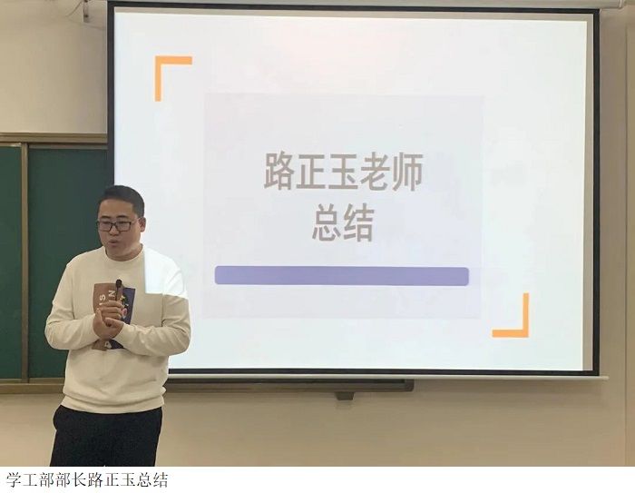 活动的最后,由学工部部长路正玉为本次活动做总结,高度表扬了本次活动中,同学们积极参与的态度,肯定了同学们的丰富的文明生活理念。对同学们在评比环节各宿舍的卫生环境和健康的宿舍文化表示高度的赞赏,希望同学们继续发扬。
