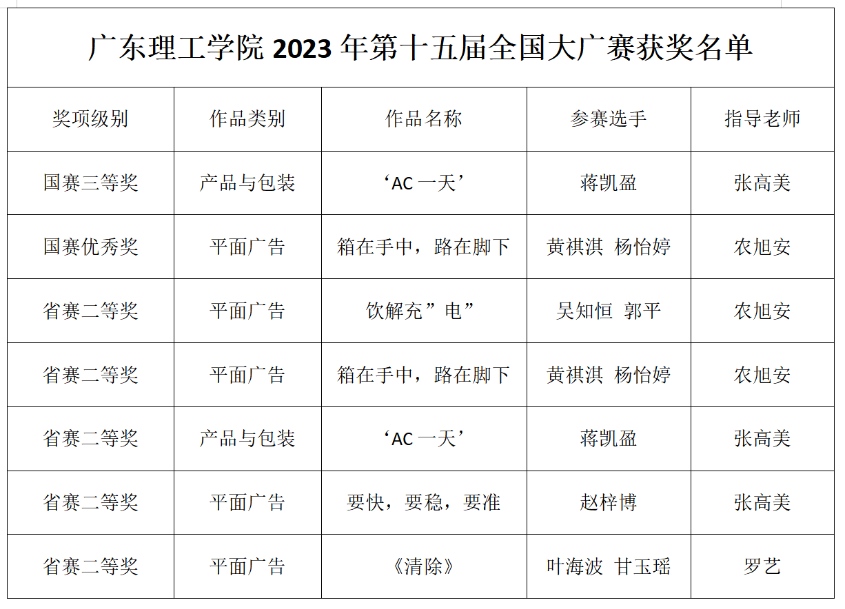 在此对获奖同学表示热烈的祝贺,并希望艺术设计学子再接再厉,进一步发挥模范带头作用,继续努力学习,争取在下一届全国老员工广告艺术大赛中取得更好的成绩!
