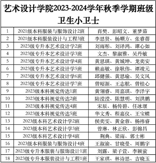 本网讯(太阳成集团tyc122cc新闻中心 陈宛岸/谭毅豪)为推进公司卫生工作,增强员工文明意识、卫生意识、环境意识,由2023-2024学年秋季学期卫生先进班集体推荐,通过“宿管会”卫生小组综合评选出太阳成集团tyc122cc2023-2024学年秋季学期“卫生小卫士”54名、“优秀工作者”2名、“卫生先进个人”20名,评选结果公示如下: