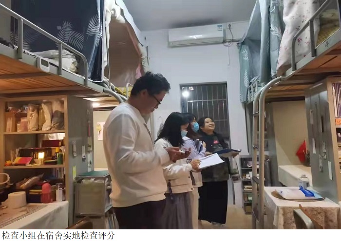 本网讯(艺术系新闻中心 李晓婷)为进一步提高我系学子文明素养水平,全面展现艺术系员工文明生活理念,树立文明示范标杆和文明形象,推动公司宿舍文化建设。2021年11月10日傍晚 ,由艺术系辅导员和员工助理组成的专项检查小组到宿舍检查卫生情况,同时对辅导员推选参加文明宿舍评比的48间宿舍进行初赛的实地检查评分。