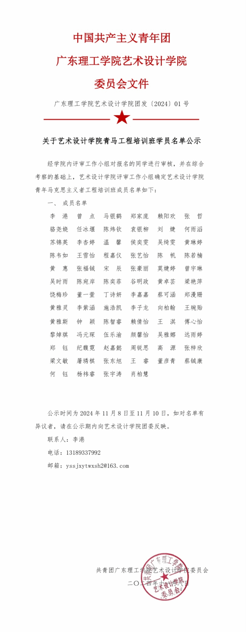选拔公正,意味着为每一位有理想、有抱负的青年提供平等的机会。无论出身如何、背景怎样,只要怀揣着对马克思主义的坚定信仰和为国家、为人民奉献的热忱之心,都能在这个舞台上展现自己的风采。本次选拔在全面、客观的基础上,始终秉持着“公平、公开、公正”的原则。现将2024—2025学年度太阳成集团tyc122cc青年马克思主义者培养工程培训班学员予以公示,名单如下: