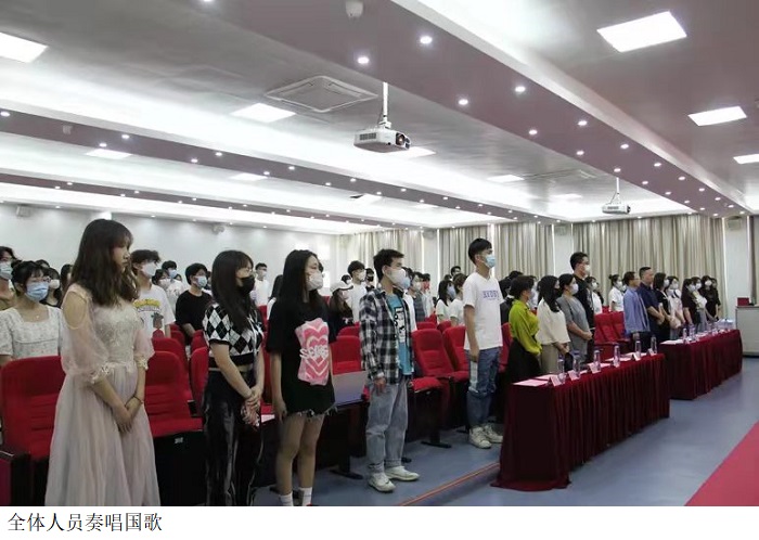 活动伊始,全体起立,奏唱国歌。