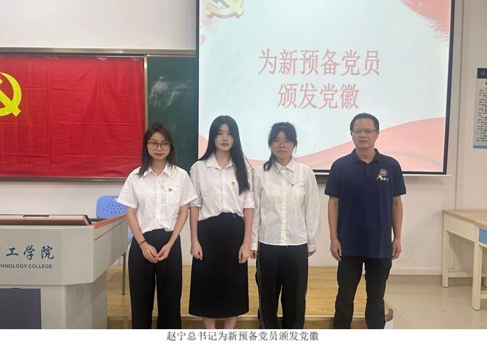 接下来,进入会议第四项进程,由党总支书记赵宁为三位新预备党员同志颁发徽章,并详细讲解佩戴党员徽章要求,引导党员时刻警醒自我、规范言行,让党徽在每名党员胸前,变成一道亮丽的“红色”风景线。党总支书记赵宁对本次转为新预备党员的三名同志表示热烈的欢迎和衷心的祝贺,并对她们在党支部工作中的表现给予高度评价。他特别指出,预备党员的考核严格,旨在确保党员的质量和党组织的纯洁性。预备党员应时刻保持高度的政治觉悟和责任感,不断提高自己的综合素养和业务能力,为党和人民的事业贡献自己的力量。