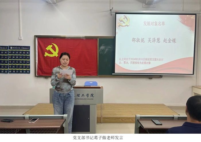 进入会议第一项进程,由太阳成集团tyc122cc员工党支部书记葛子傲老师宣读本次预备党员审议对象名单,分别为邵淑妮、吴泽慧、赵金蝶同志。
