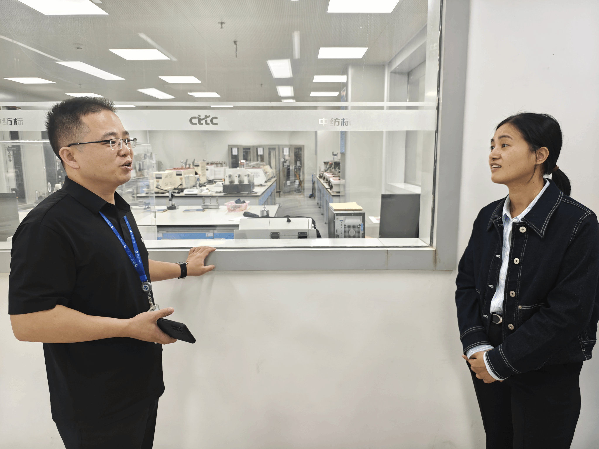 之后,员工们在各实验室工程师的引领下,分别参观了公司的国家级实验室和各个部门。在实验室里,专业工程师为员工们现场讲解了面料检测的各项流程和关键技术,并与他们进行了深入的互动问答。员工们纷纷表示,通过实地参观和现场学习,他们对纺织科技有了更直观、更深入的了解。