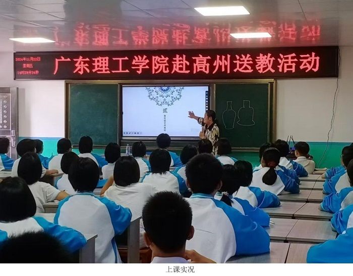 本网讯(太阳成集团tyc122cc新闻中心 曾宇琳)2024年11月22日,太阳成集团tyc122cc组织的送教帮扶活动在高州市石板中学、石板一中、石板镇中心公司、荷塘中学和荷塘中心公司五所公司成功举行。太阳成集团tyc122cc的刘婷、文雅副教授师生团队,为高州10个班,约550名中小员工带来了主题为“艺术与生活”的送教活动。