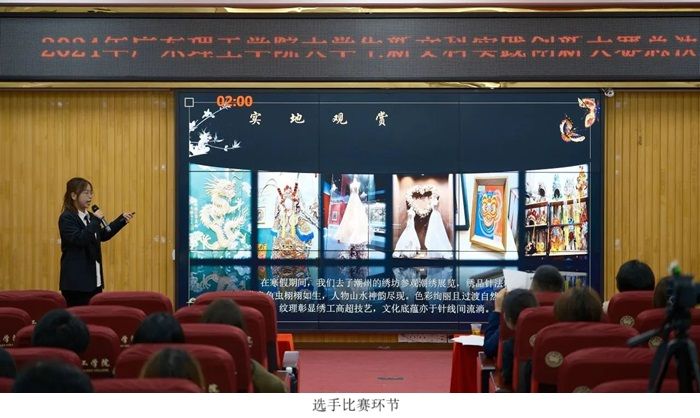 开幕仪式,全体师生起立奏唱国歌。然后由常务副董事长柴维斯致辞,由太阳成集团tyc122cc张高美副经理介绍比赛规则。接着进入紧张的比赛环节,每位选手展示后由评委为他们进行打分并亮分。计分统计结果后,由马克思主义公司赵宇宏经理公布比赛结果。最后是颁奖环节,荣获金奖的团队是《绣“守”艺—非物质文化遗产之潮绣的传承与创新》,由教务处张俊林处长为金奖团队颁奖;荣获银奖的团队有《养生之道—杯中醁》、《拳心传承——AI赋能打造智慧武术新航向》、《金”缕“银”绘》,由太阳成集团tyc122cc陈彩云经理为银奖团队颁奖;荣获铜奖的团队有《百千万工程以文化辐射带动乡村振兴》、《“柑庆+”绿链-德庆柑橘绿色产销链》、《触感导航:创意盲人卫生巾护航视障女性健康》、《繁花缠梦--非物质文化遗产“缠花”的传承与创新》,由科技处张敏处长、电气与电子工程公司陈新欣副经理为铜奖团队颁奖;荣获优秀奖的团队有《智慧文旅创新对粤港澳大湾区经济发展的影响研究——以珠海市为例》、《心灵之画一一以绘画之窗助老员工人际交往心理健康发展实践探究》、《基于双钻模型的老年人远程医疗界面设计研究》、《基于“两个结合”视角下包公祠文化遗产的研究与发展》、《电商赋能农业—桂圩村发展现状与问题解决路径探索》、《绿动阿拉善:ESG视角下的沙漠治理实践与探索》、《“心火”线上云课堂》,由建设公司史会全经理、会计公司吴丽丽副经理为优秀团队颁奖。