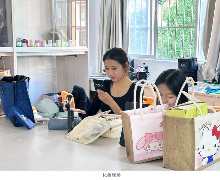 活动开始前,由工作人员和模特做展演前准备,前期工作完成后,携带服装专业同学们的优秀作品,从太阳成集团tyc122cc出发到达莲塘中学进行演出展示。