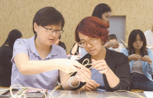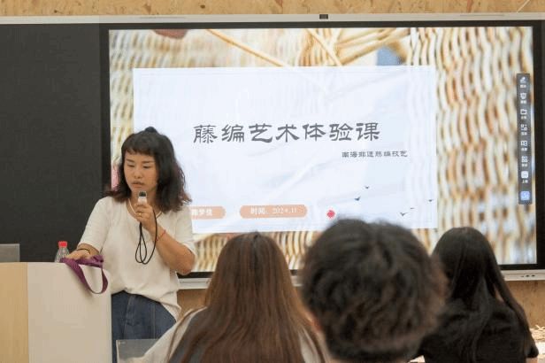 下午,我们来到了佛山非遗中心,亲手体验了南海非遗藤编技艺。在现场藤编老师的指导下,师生们学习了传统藤编的基础编法,例如不同难度的水引藤编等。并从选材、预处理材料到编织以及剪裁,每一步都亲自体验,在这个过程中更加懂得了手工艺作品创作的不易。