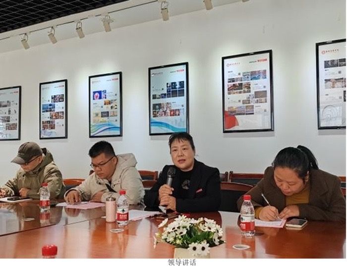 第二日上午,师生团队到访西京公司设计艺术公司,公司的师生给予了热情接待,在设计艺术公司教务科科长吴鹏化老师的主持下,两校交流与座谈拉开帷幕。吴老师详细介绍了西京公司艺术公司各专业团队建设、课程设置、技能竞赛、团队队伍、教学管理以及未来规划,并期望充分挖掘双方的学科优势和办学特色,互学互鉴,携手并进。