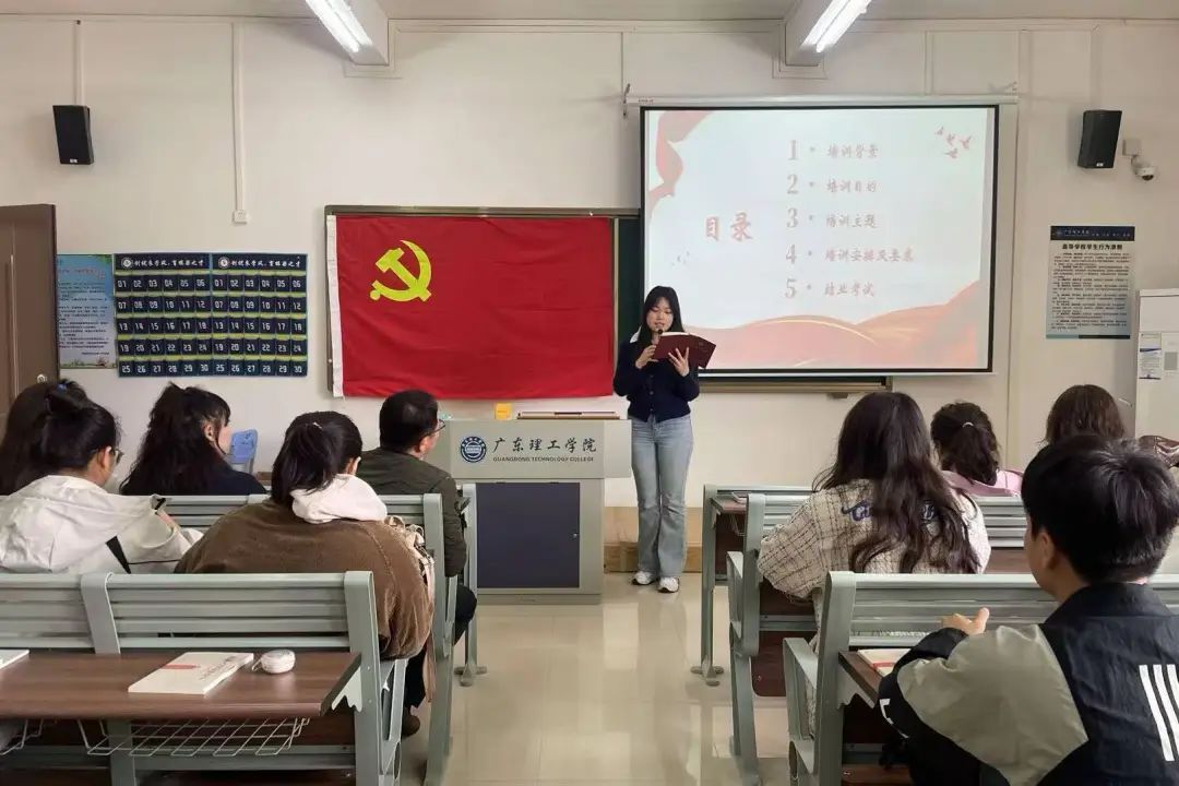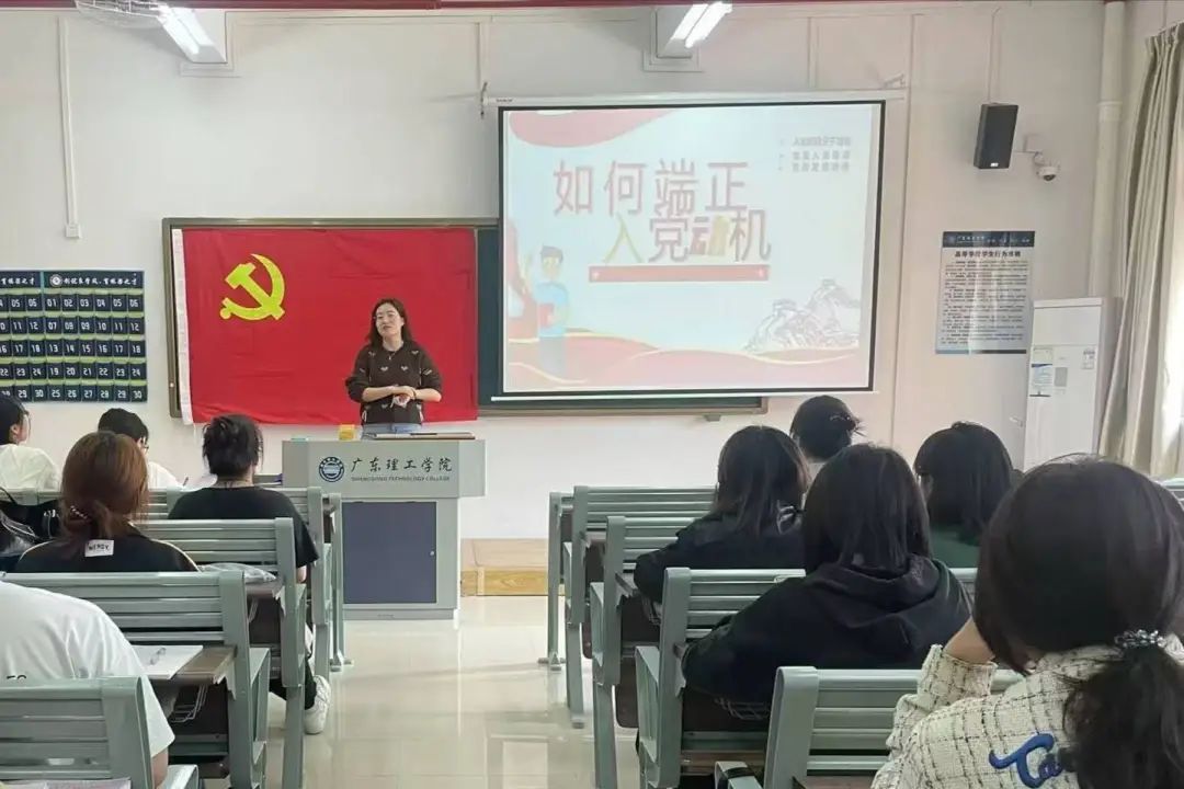 接下来是党员教师张海玲进行授课,授课内容为“提出党员的发展工作细节,端正入党动机,争取早日入党”。