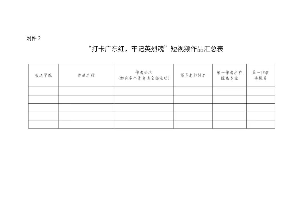 (附件 2:“打卡广东红,牢记英烈魂”短视频作品汇总表)