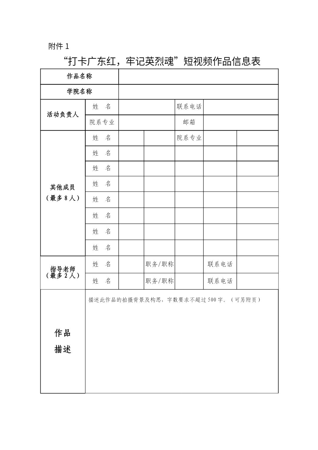(附件 1:“打卡广东红,牢记英烈魂”短视频作品信息表)