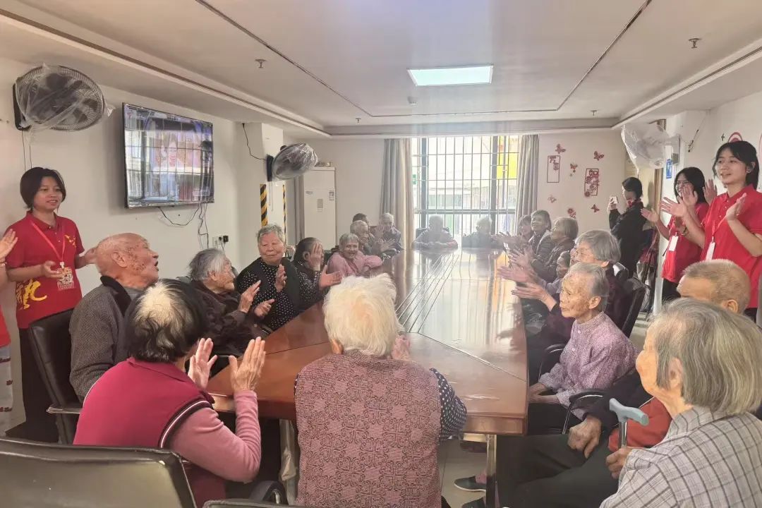 老人们对大家的到来表示热烈欢迎,脸上洋溢着温暖的笑容。同学们围坐在老人身边,亲切地与他们谈心,耐心倾听老人讲述过去的故事,老人们还带领同学们一起唱《没有共产党就没有新中国》。现场氛围热烈且充满感染力的。老人们饱含深情,用他们经历岁月沉淀的声音传递着对党的深厚情感,同学们则满怀敬意,认真投入地学唱。歌声激昂有力,回荡在空气中,仿佛将大家带回到那段波澜壮阔的历史岁月。结束后,现场响起了热烈的掌声,老人们脸上露出笑容,是对我们极大的鼓励。此次养老院志愿服务活动不仅为老人们带去了欢乐与温暖,更展现了当代老员工的社会责任感与奉献精神。通过此次活动,深刻体会到了尊老敬老的重要性,也更加坚定了他们为社会传递爱心与正能量的决心。
