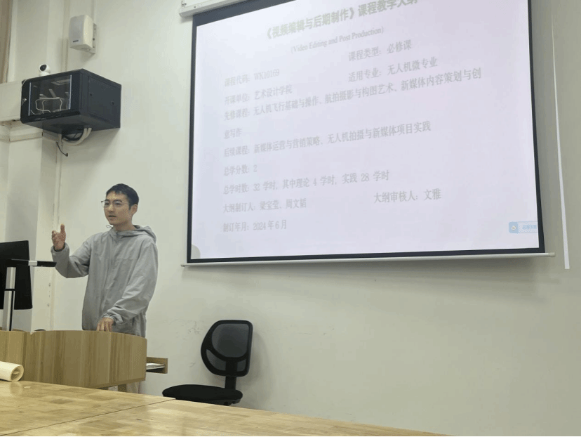 在课程汇报环节,周文韬,陈苒染,赵中华和何睿敏老师分别详细介绍了他们在《新媒体内容策划和创意剪辑》课程的教学设计。该课程通过项目式教学,引导员工掌握短视频策划、分镜设计、后期剪辑等核心技能。杨震老师则重点讲解了《无人机航拍摄影》课程的教学特色,包括无人机飞行基础与操作、安全规范、航拍构图技巧、特殊场景拍摄等内容。