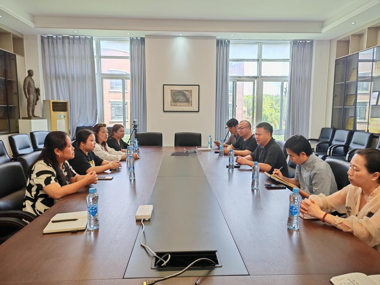 江西师范大学美术公司对本次交流活动给予高度重视,经理夏学兵、副经理韩吉安牵头接待,公司各专业负责人全程参与。座谈会上,夏学兵经理系统介绍了美术公司整体发展情况,重点分享国家级一流专业建设实践经验。他指出,公司依托综合性大学学科优势,构建"艺术基础+专业核心+实践创新"课程体系,其中视觉传达设计专业形成"红色文化视觉转化"特色教学方向,服装与服饰设计专业在"赣鄱传统服饰工艺传承"领域形成教学品牌。