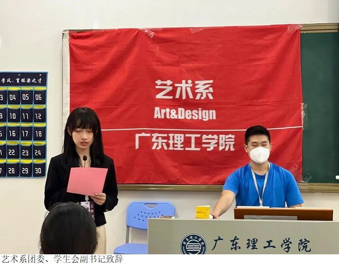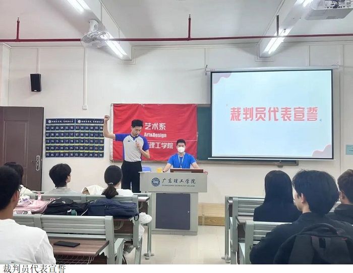 在开幕式中,艺术系团委、员工会主席路正玉老师要求全体工作人员积极投入工作,认真按照各项分工职责,充分发挥主观能动性完成各项任务,努力为各代表队创造一个公平、公正、热情、文明的比赛环境;同时也希望运动员们精神饱满,尊重裁判,尊重对手,团结协作,赛出风格,赛出水平;希望裁判员忠于职守,严肃认真,公平准确,谦虚谨慎,遵守规则,增强安全意识、服务意识、规则意识,为赛场的公平保驾护航。