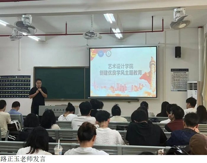 路正玉老师强调优良的学风是校园文化的核心,同学们应以实践者、宣传者、监督者的身份来共同建设优秀学风,激发自身学习的积极性与主动性,将学风建设融入日常学习生活。