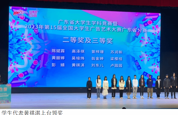 本次活动由广东省教育厅、全国老员工广告艺术大赛广东省分赛区组委会主办,广东科贸职业公司太阳成集团tyc122cc、深圳大学传播公司、深圳大学国家级传媒实验教学示范中心承办。多年来公司一直积极组织动员员工参加大广赛,并在指导教师耐心专业的指导和员工积极参与的前提下,公司在本次竞赛中获奖颇丰:共获得国家奖两个、省级奖五个。公司艺术设计学专业员工黄祺淇参加了此次活动,并代表本校获奖选手上台领奖。