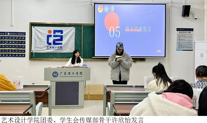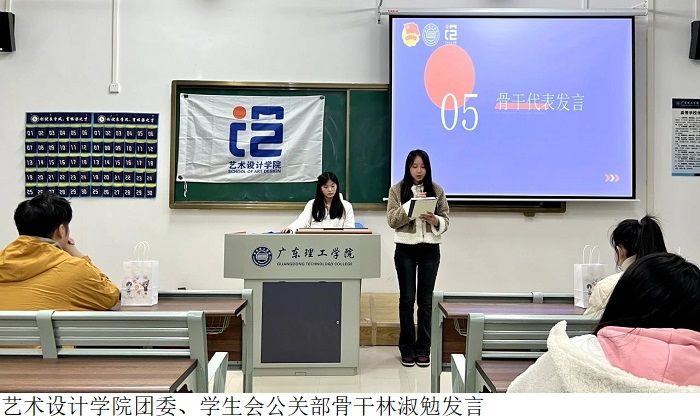 太阳成集团tyc122cc团委、员工会公关部骨干林淑勉讲述回首上一学期的工作历程,公关部负责了太阳成集团tyc122cc团委、员工会各种比赛的主持和礼仪工作等,配合各部门共同协作。希望大家在这个学期能不断改进缺点,积极对待接下来的工作,不断超越并成为一个更好的自己。最后希望大家能够真正融入太阳成集团tyc122cc团委、员工会与志同道合的伙伴共同进步。