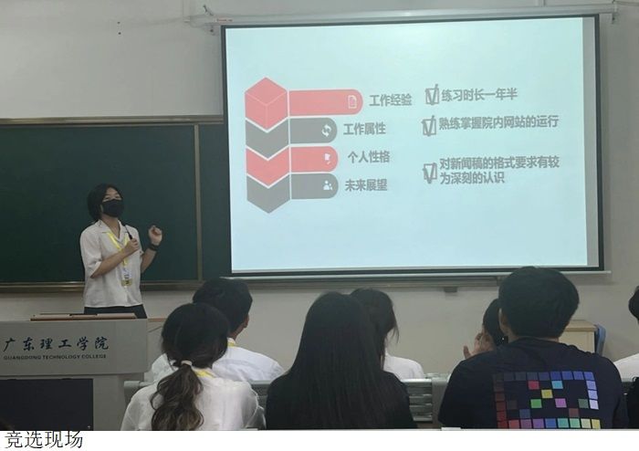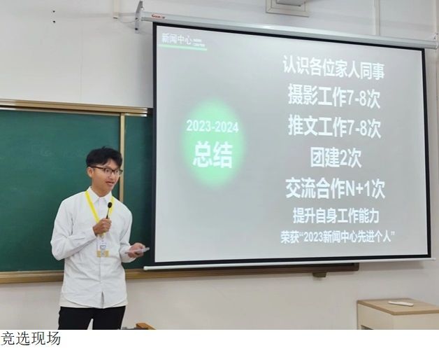 首先,进行新闻中心主任的竞选,由竞选人员依次上台发言。其次是各部长的竞选,竞选干事上台阐明竞选职位并发表竞选演讲。最后由魏佳佳老师总结发言并宣布竞选大会圆满结束。