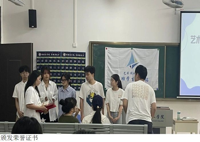 接下来进行易班大会的交接环节。由蔡文锋老师为22届干部颁发荣誉证书