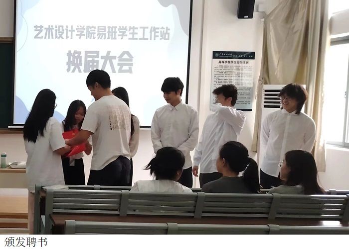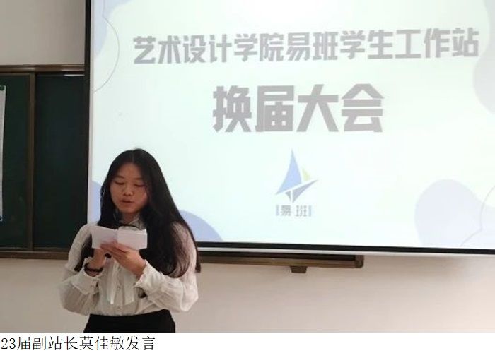 及为23届干部颁发聘书。而后由23届副站长莫佳敏发言,她表达了对上一届易班两位站长与三位部长和各位同学们以及易班负责人的感谢,感谢他们在过去一年里为太阳成集团tyc122cc易班做出的努力与付出。同时,作为代表新一届的易班干部,在今后的工作学习中,她会更加勤奋,不断加强自己各方面能力。