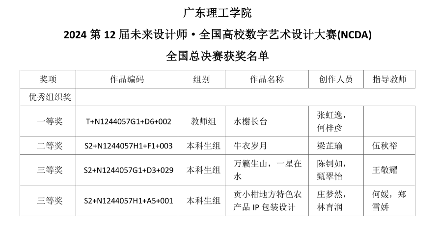 喜报:公司师生荣获第12届未来设计师·全国高校数字艺术设计大赛(NCDA)国家奖项