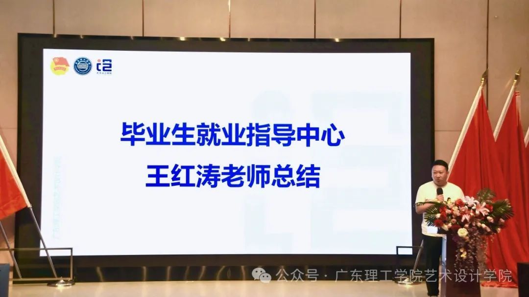 王红涛老师总结了三个方面主要内容为:第一方面是感谢评委老师和工作人员的辛苦付出;第二方面是赞扬参赛员工表现优秀,通过简历展现出创新创造精神与对设计的高度归属感;第三方面是希望同学们保持积极向上精神,欢迎大家后续积极参与就业指导中心举办的更多就业活动!
