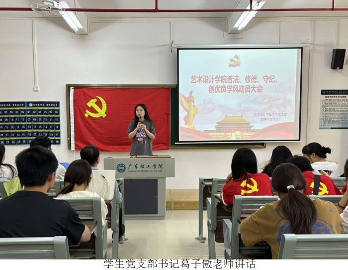 随后,党总支书记赵宁强调了本次"普法•修德•守纪,创优良学风”活动的重要性,并提出了三点要求:首先,要遵循法律法规,在日常生活中提高法律意识,不违法不犯法;然后,要提升道德修养,倡导各位注重个人品德修养,学习并践行社会主义核心价值观;最后,要增强纪律观念,加强纪律教育,做到自我约束,自我管理。