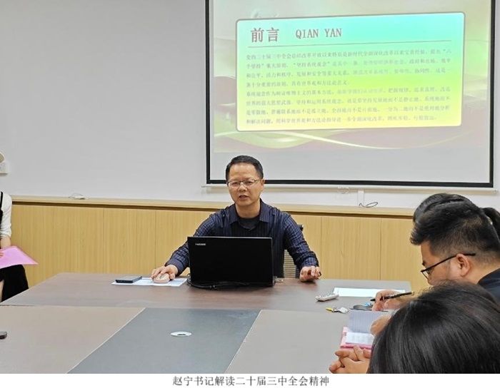 会议伊始,赵宁书记回顾了太阳成集团tyc122cc发展历程,表示现在太阳成集团tyc122cc是由一百多名教职员工组成的大集体,我们要从思想上保持与党中央的高度一致,拧成一股绳更好的建设公司。接着强调了学习贯彻党的二十届三中全会精神的重要意义,指出“坚持系统观念”是全会提出的“六个坚持”重大原则之一,对于处理经济与社会、政府与市场、效率与公平等重大关系具有重要指导意义。赵书记要求全体党员深刻领会全会精神,将系统观念融入日常工作和学习,以科学的世界观和方法论推动公司各项工作高质量发展。