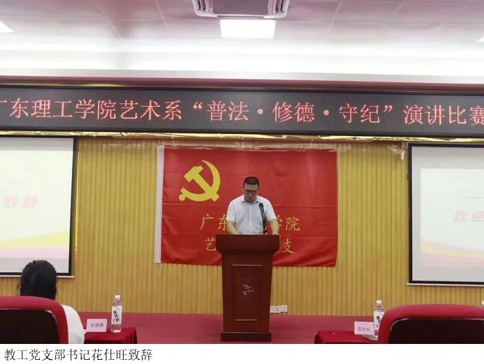 艺术系教工党支部书记花仕旺致辞,他表示:学风建设工作一直是公司重点关注的问题,通过此次活动可以让同学们更进一步地提高自身守法意识,提高自身素质和科学文化素养;同时也为构建和谐校园奠定了坚实基础。严格要求员工遵守公司各项规章制度,把遵规守纪落实到日常的行为举止当中,为创建优良学风而努力奋斗。