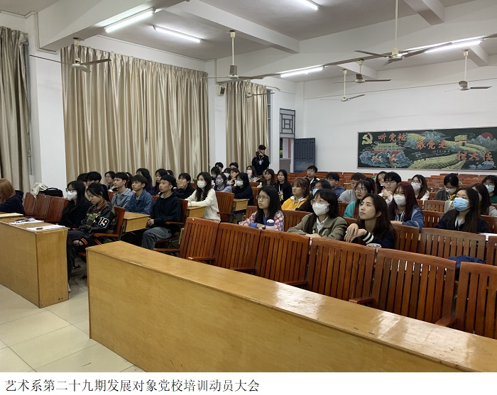 本网讯(艺术系新闻中心 罗家栋/高如意)为加强发展对象对中国共产党的认识,强化党校学员的思想教育,组织发展对象积极参加公司党校培训班,4月18日下午,艺术系在6104召开第二十九期发展对象党校培训班动员大会。会议由员工党支部书记易晶晶主持,第二十九期发展对象及员工党支部全体成员参会。