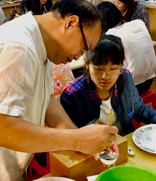 李泳琪出生在岭南传统工艺重镇——广州,她一直对对中华传统文化很着迷。广彩瓷烧制技艺也就是我们常说的“广彩”,在2008年就已经被纳入了国家级非物质文化遗产。李泳琪刚接触广彩,便被它丰富多变的色彩及图案所吸引。高三毕业时,李泳琪模仿广彩工艺,绘制高中校门,作为送给自己的毕业礼物。初次尝试虽然比较业余,但是却更加深了李泳琪对广彩的喜爱,也激发了她强烈的学习欲望。几经辗转,李泳琪拜师广彩非物质文化遗产代表性传承人——赵艺明、冯瑞华,开启正式的广彩学习。
