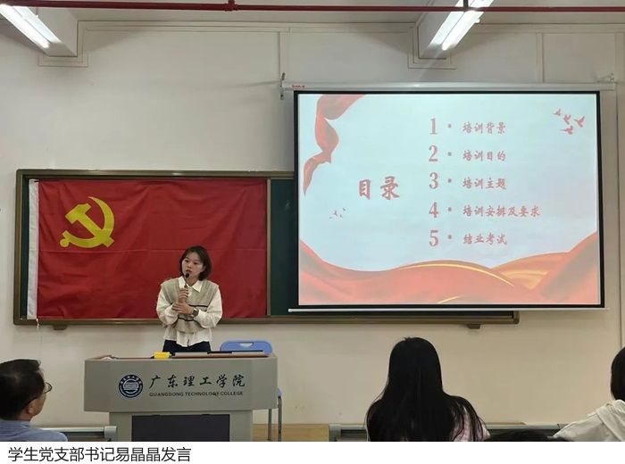 首先进行典礼第一项,员工党支部书记易晶晶进行了发言员工党支部书记易晶晶介绍了本次入党积极分子的培训背景、培训目的、培训主题、培训安排及要求等,并强调了“老员工是国家宝贵的人才资源,是民族的希望,是祖国的未来。”入党积极分子作为员工优秀代表,更应该加深对党的思想认识,弘扬全心全意为人民服务等思想精神。希望通过本次党校培训班的学习,使广老员工进一步了解党的有关知识,掌握党的基本理论知识,明确党员标准及发展程序,引导他们以党员的标准严格要求自己,努力发挥先锋模范作用。