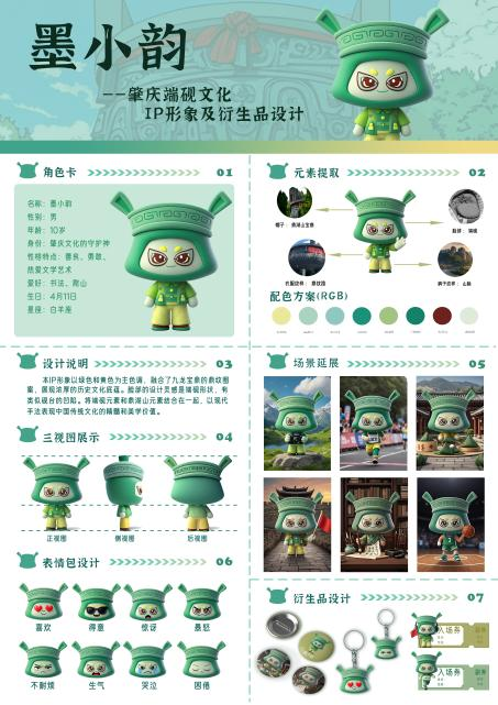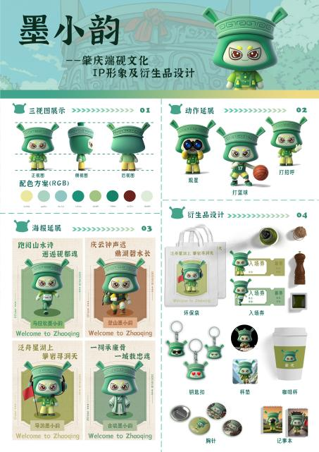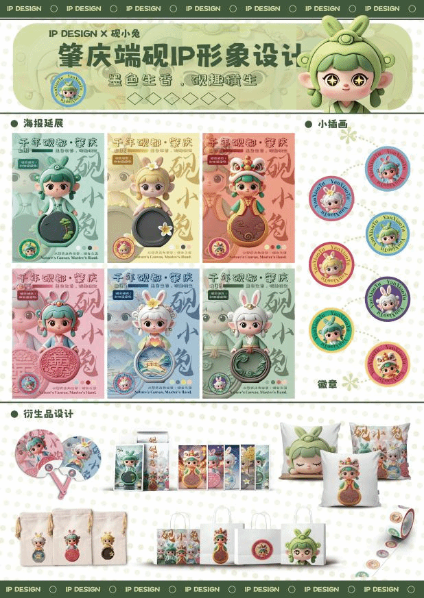 一等奖作品《砚小兔》:以Q萌兔耳融合砚台造型,通过春节、中秋等节日主题服饰,让端砚文化“走进生活”,推广和传承端砚文化。