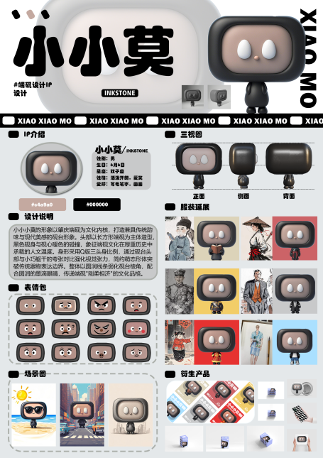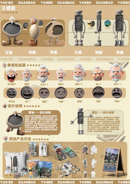 优秀奖作品《石默》:极简三头身设计,墨滴眼睛与暖色砚心碰撞,诠释“刚柔并济”的东方美学,既保留端砚作为文房重器的精神内核,又以萌趣形态拉近与传统文化的距离。