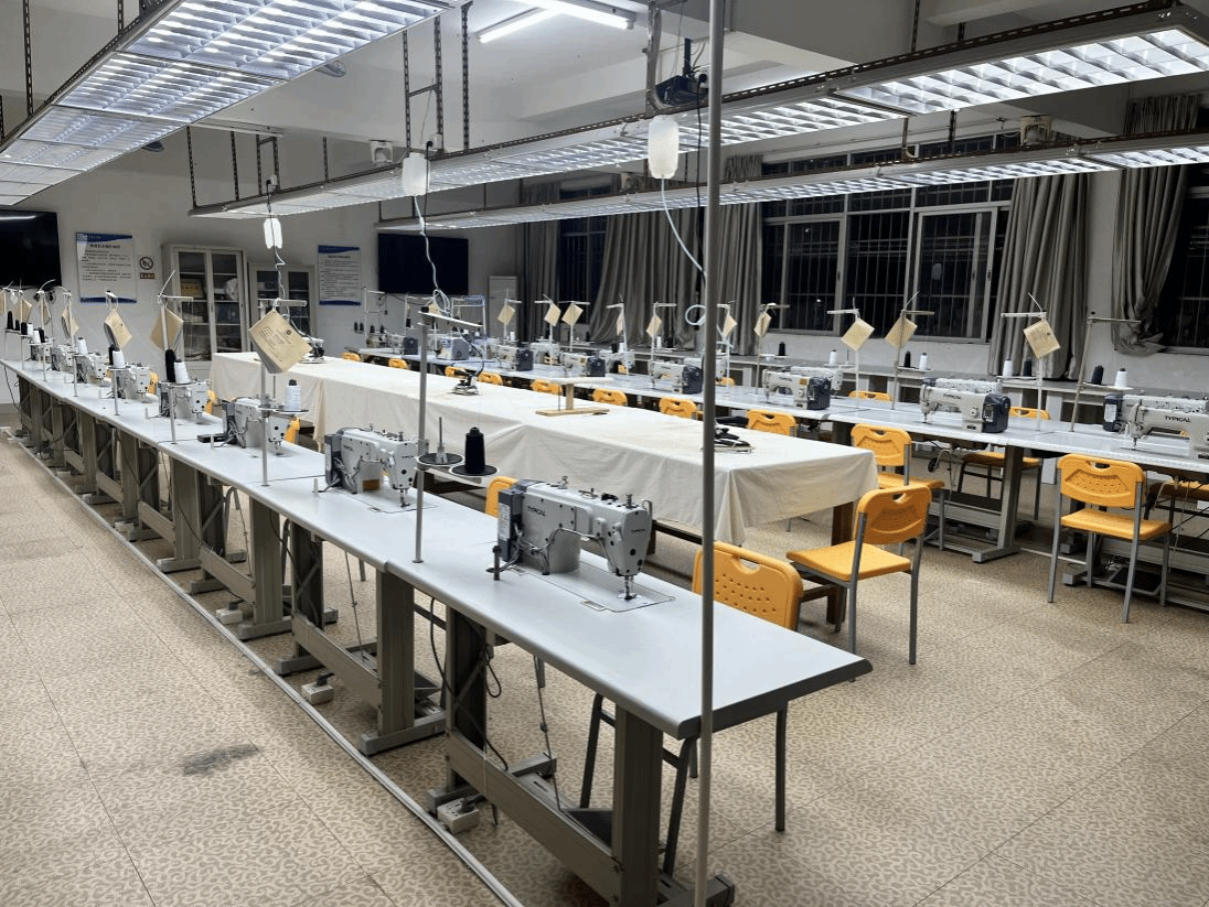 服装工艺实训室(1)成立于2008年,占地面积158㎡,实训室设备包括电脑平缝机、锁边机、吸风烫台、熨斗等。