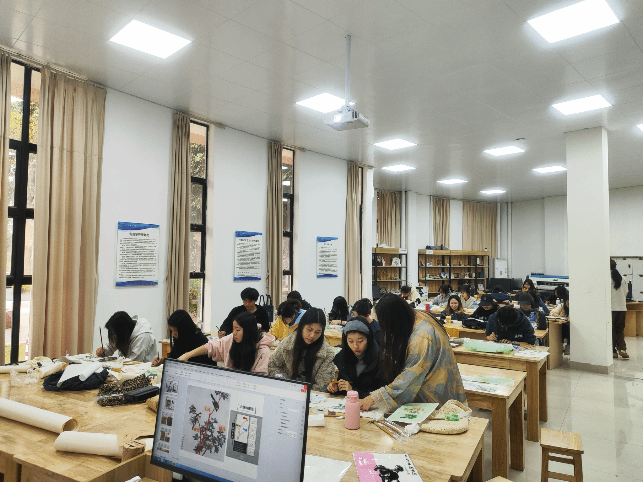 文创实训室建立于2013年,占地面积150㎡。实验室配备了先进的设备设施,包括数字设计工作站、3D打印机、彩色打印机、多媒体制作设备等。实训室主要面向艺术设计学等专业。